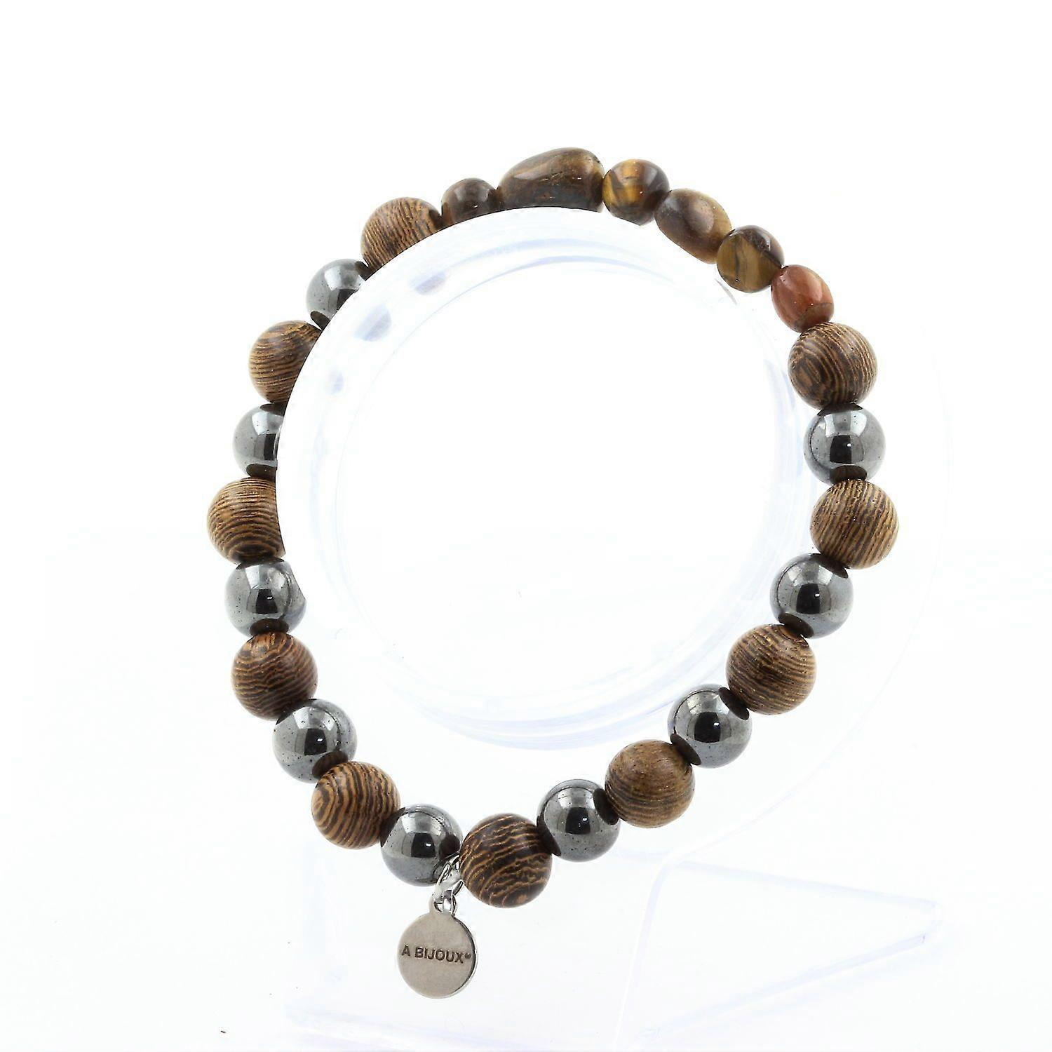South African Tiger Eye Bracelet + Hematite Beads + 8 mm wood