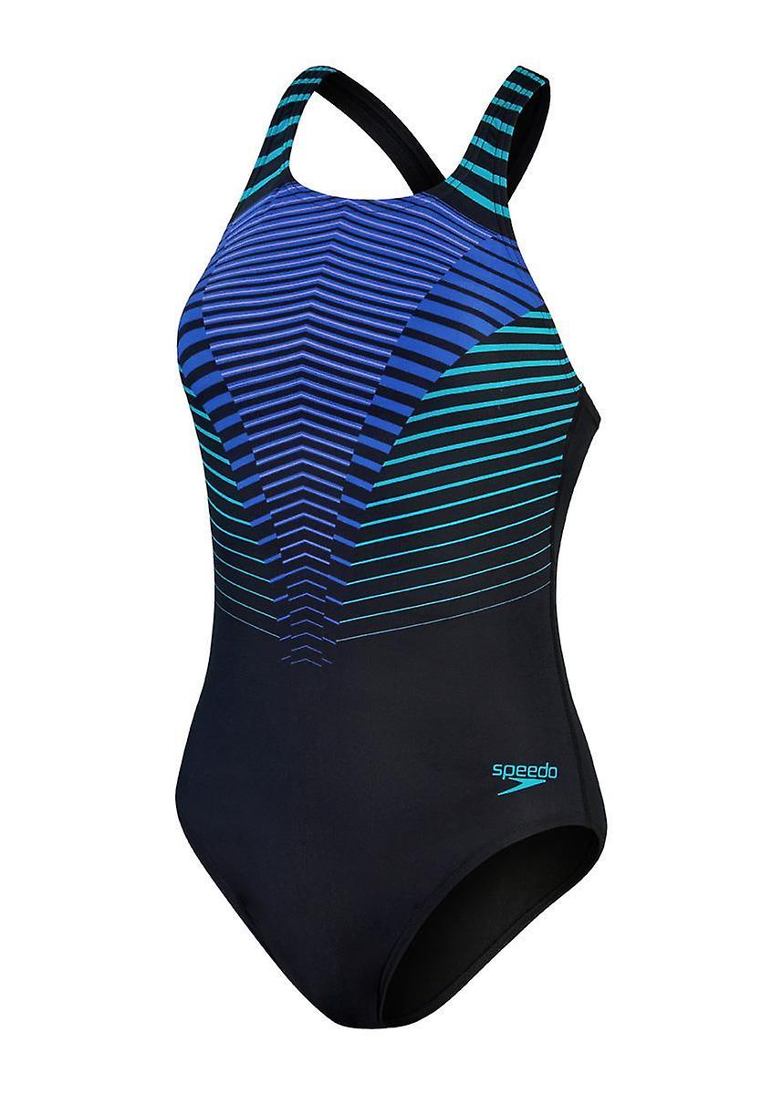 Speedo Digital Printed Medalist Swimsuit - Black/ Chroma Blue/ Aquarium/ Miami Lilac - Girls
