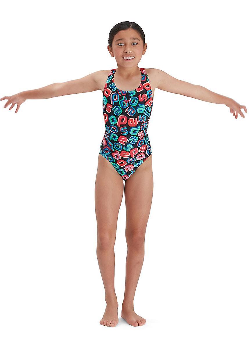 Speedo Girl's Digital Allover Leaderback Swimsuit - Black/ Red/ Pink/ Blue