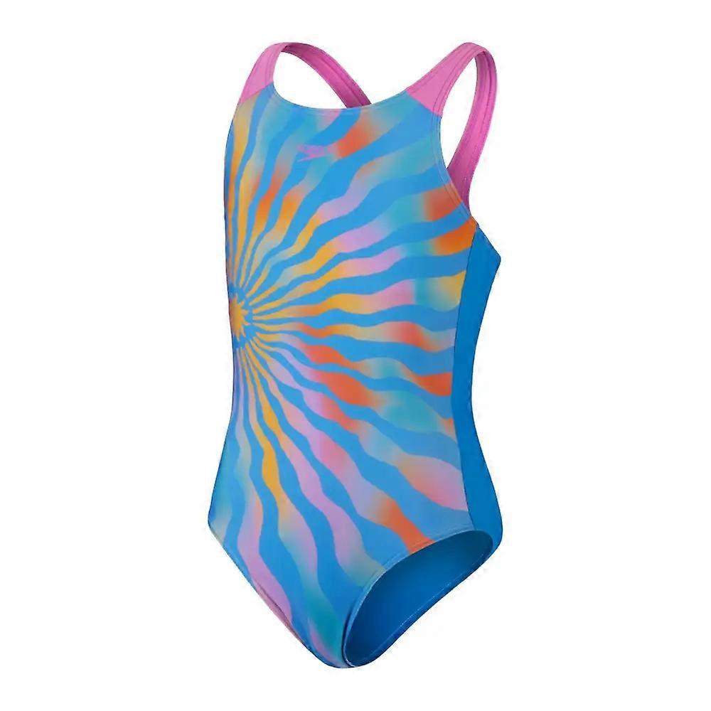 Speedo Girls Digital Placement Pulseback Swimsuit - Blue/Yellow