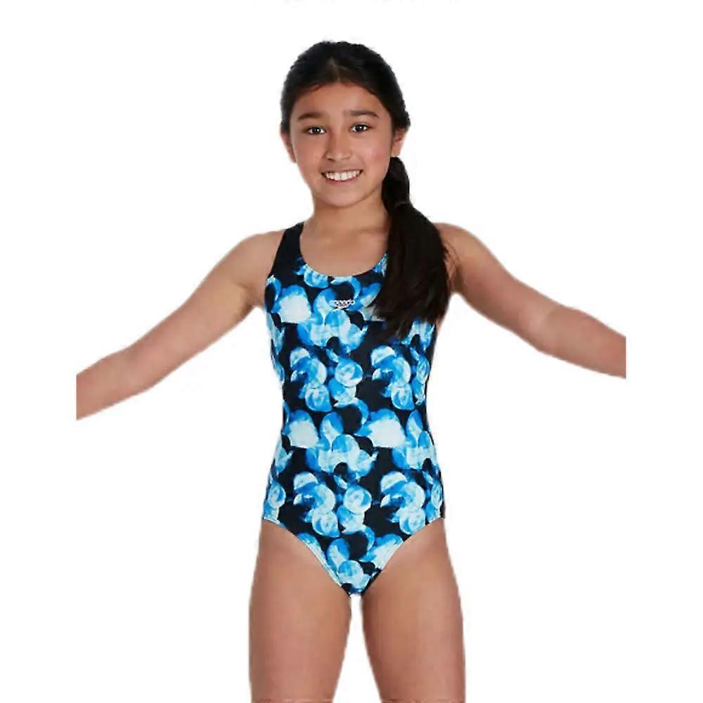 Speedo Girls Endurance Allover Splashback Swimsuit - Blue/Black