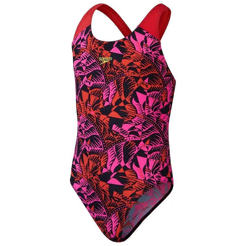 Speedo Girls Placement Allover Splashback Swimsuit- Black/Pink