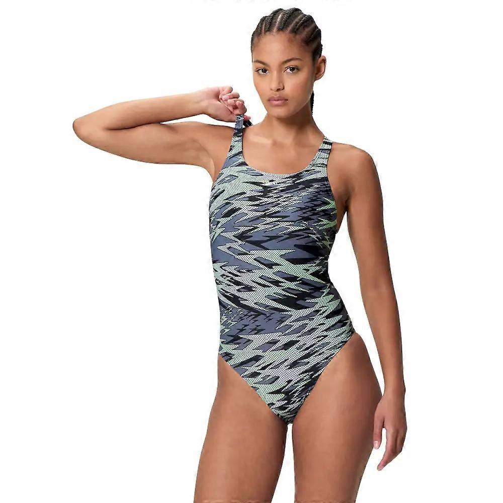 Speedo Hyperboom Print Medalist Swimsuit - Black/Grey
