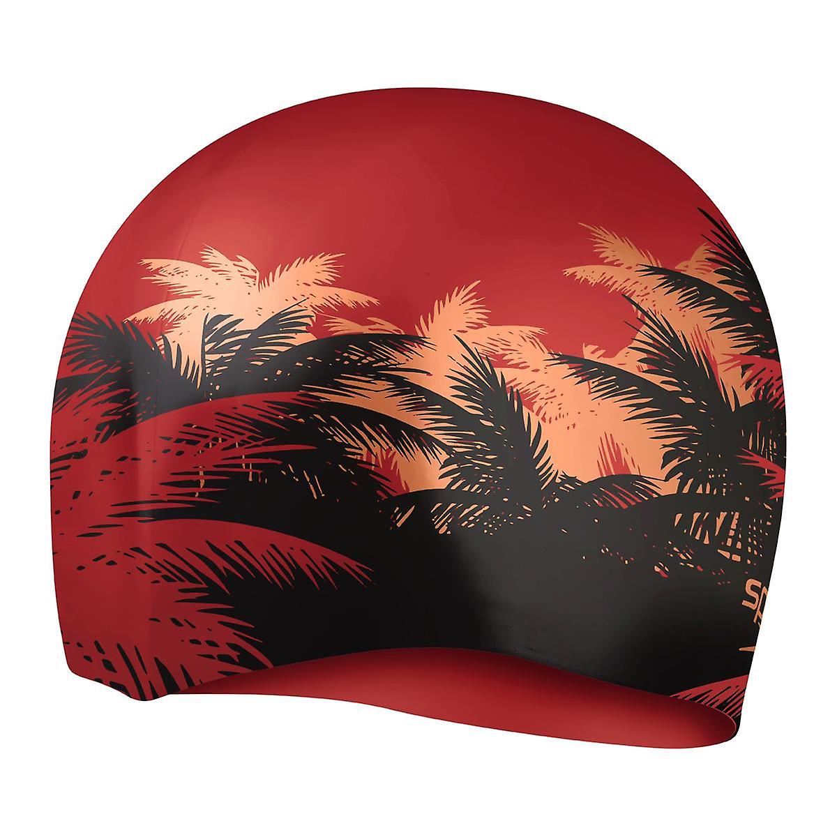 Speedo Long Hair Printed Silicone Cap - Black/ Oxblood/ Tandori Spice - Womens