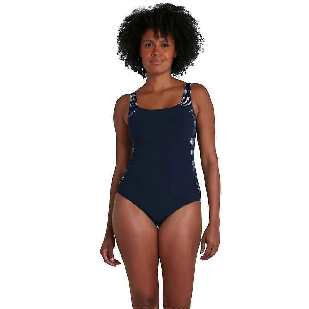 Speedo LunaLustre Shaping Printed Swimsuit - Navy