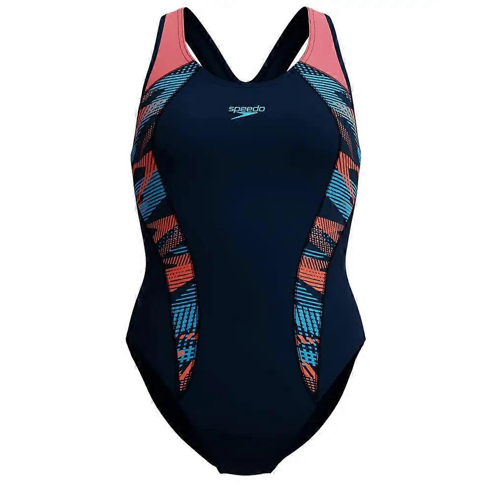 Speedo Placement Laneback Swimsuit - Navy/Coral