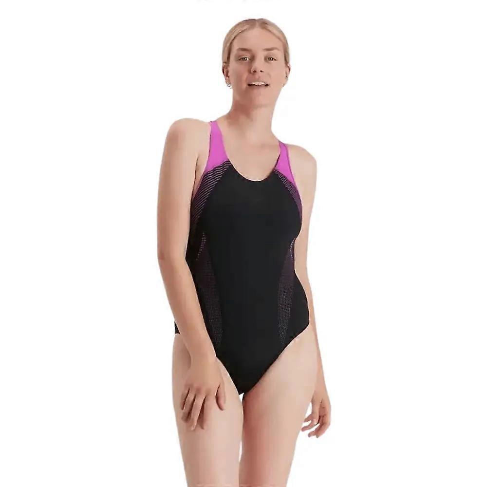 Speedo Placement Laneback Swimuit - Black/Pink
