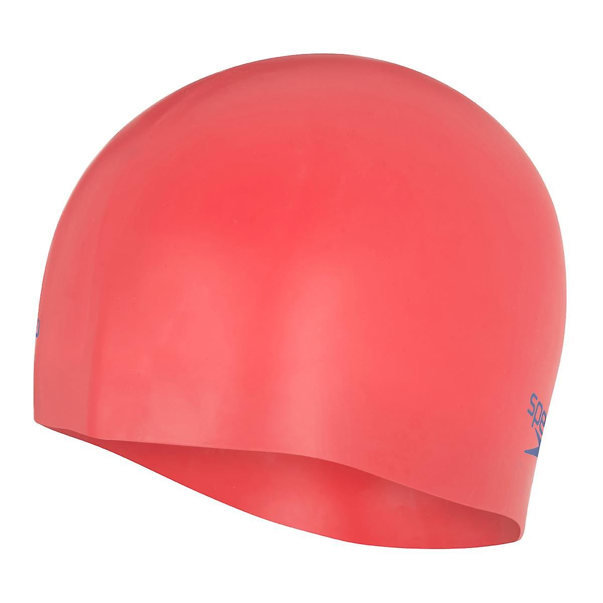 Speedo Plain Moulded Junior Silicone Cap - Siren Red/ Blue Flame - Girls