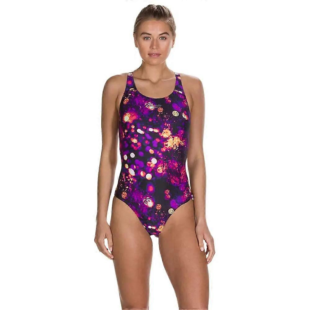Speedo Surfaceshine Allover Powerback Swimsuit - Black/Purple
