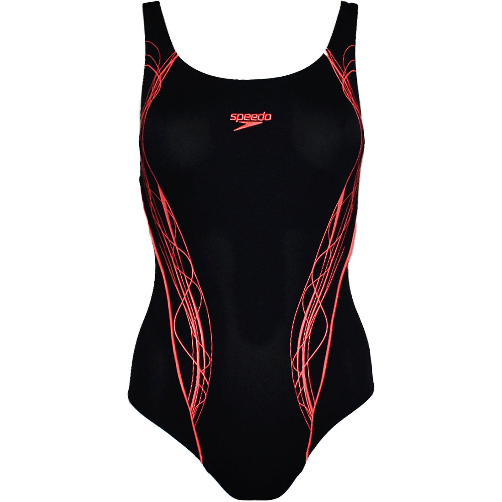 Speedo Womens Panel Muscleback One Piece Swimming Swim Costume - Black/Red