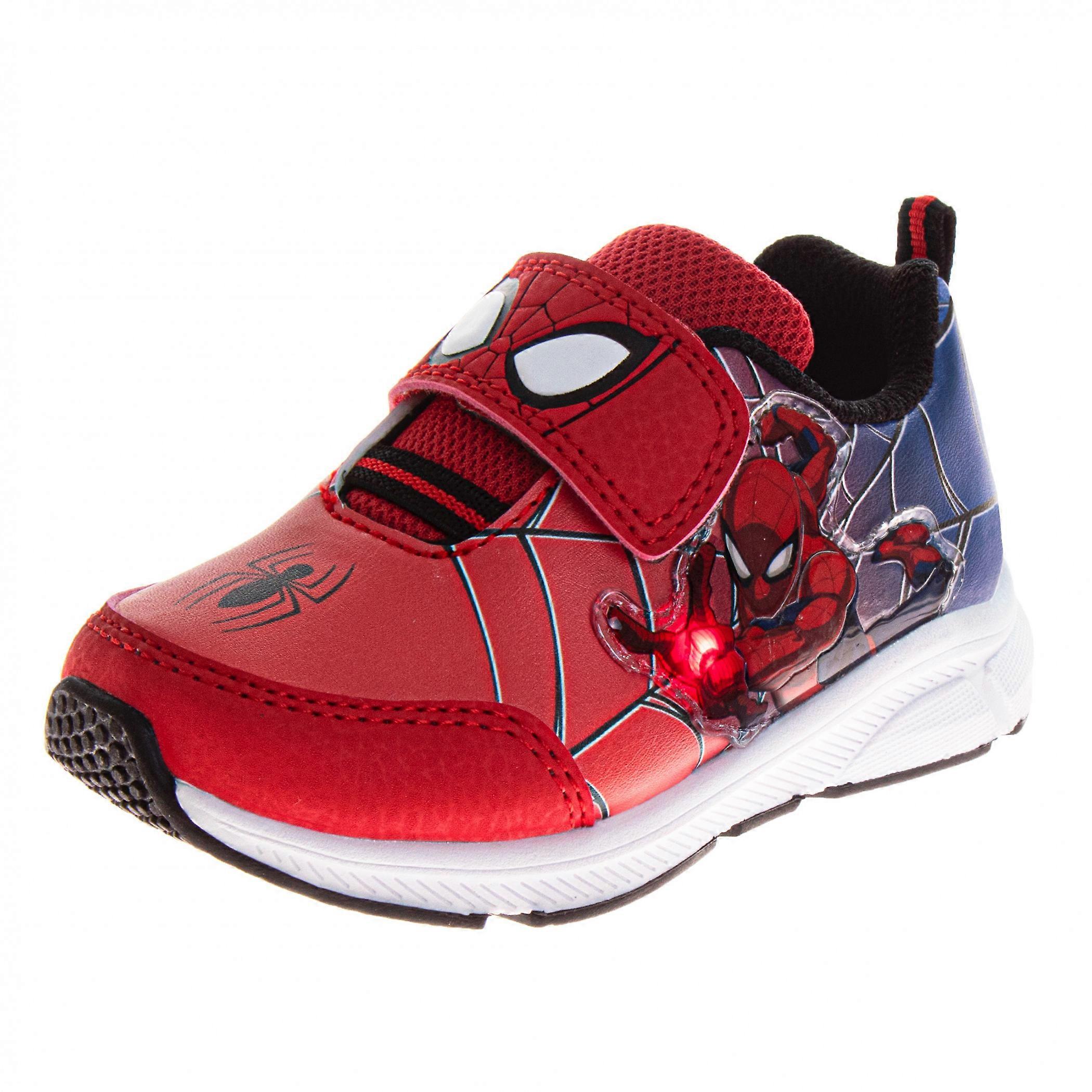 Dash across the playground like Spidey chasing down a runaway Vulture with these officially licensed Spider-Man Webs Light-Up Kid's Sneakers. Made from durable polyurethane, these red and blue webbed-out kicks feature light-up soles that flash with every step, plus secure hook-and-loop straps for quick changes between hero time and snack time. All sizes are US sizes.