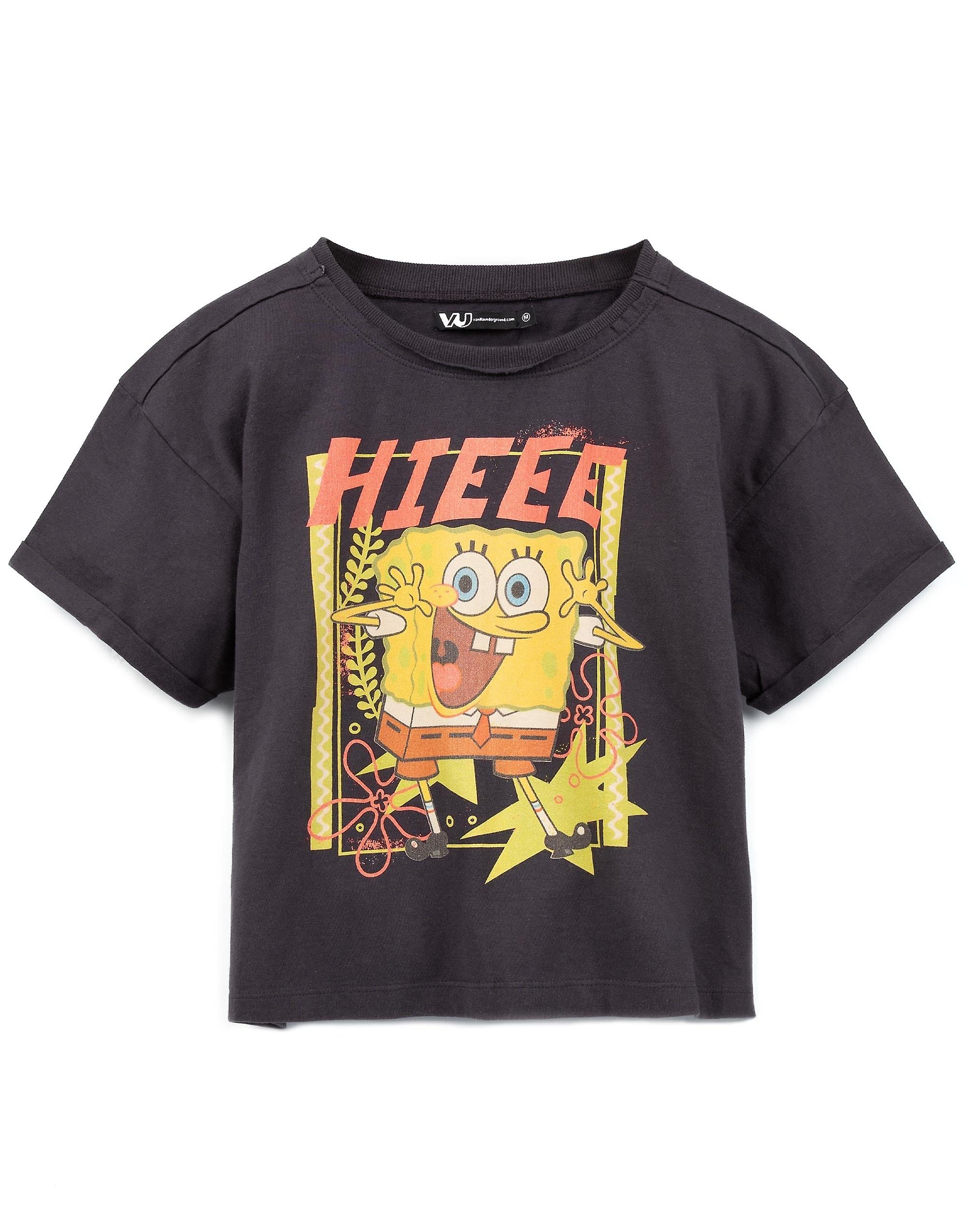 SpongeBob SquarePants Womens Cropped Short Sleeved T-Shirt Grey Character