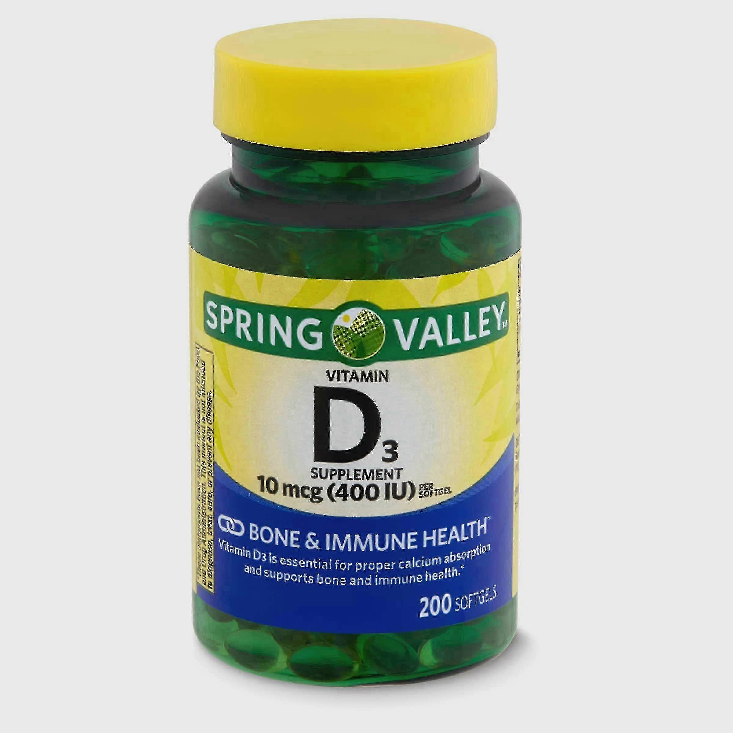 Spring Valley Vitamin D3 Supplement, 10 Mcg, Softgels, 200 Ea