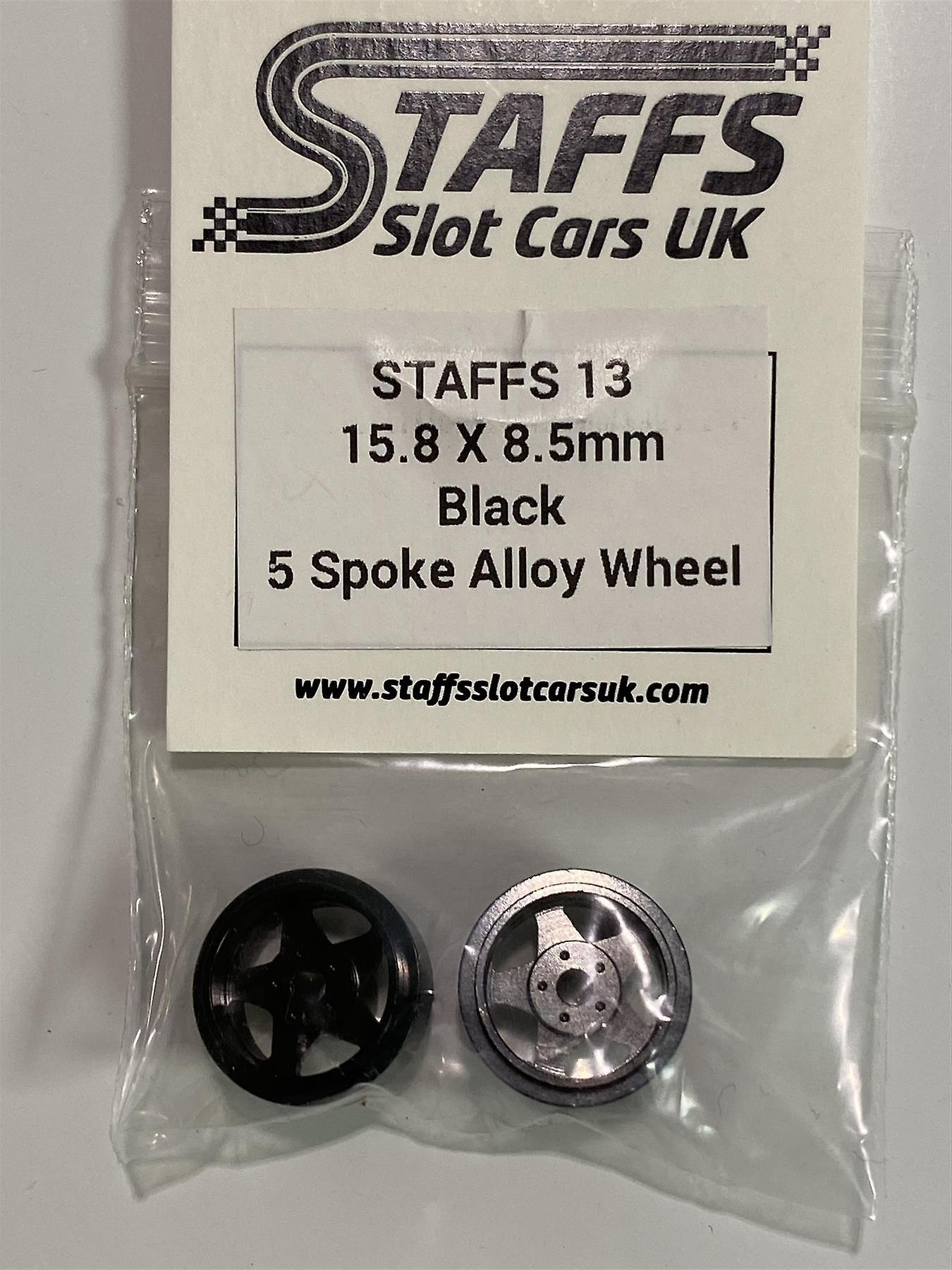 Staffs Slot Cars UK 15.8 x 8.5mm Black 5 Spoke Alloy Wheels Staff 13
