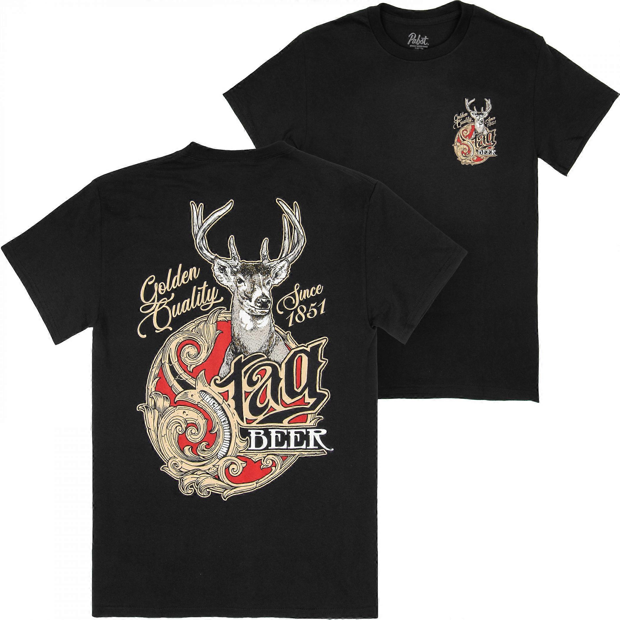 Stag Beer Logo Black Front and Back Print T-Shirt