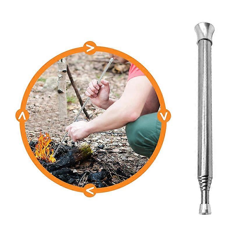 Stainless Steel Blow Fire Tube Outdoor Cooking Two-end Fire Pipe Survival Tools Portable Camping Emergency Telescopic Burner
