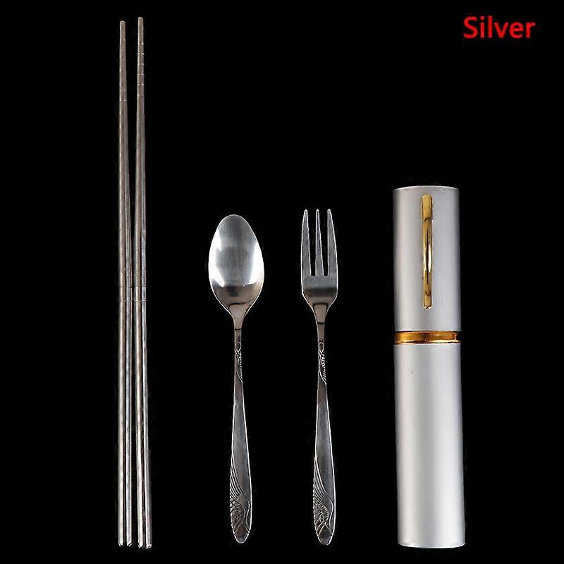 Stainless Steel Fork Outdoor Sanitary Spoon with Storage Case Tableware Travel Camping Chopsticks Cutlery Set Hiking
