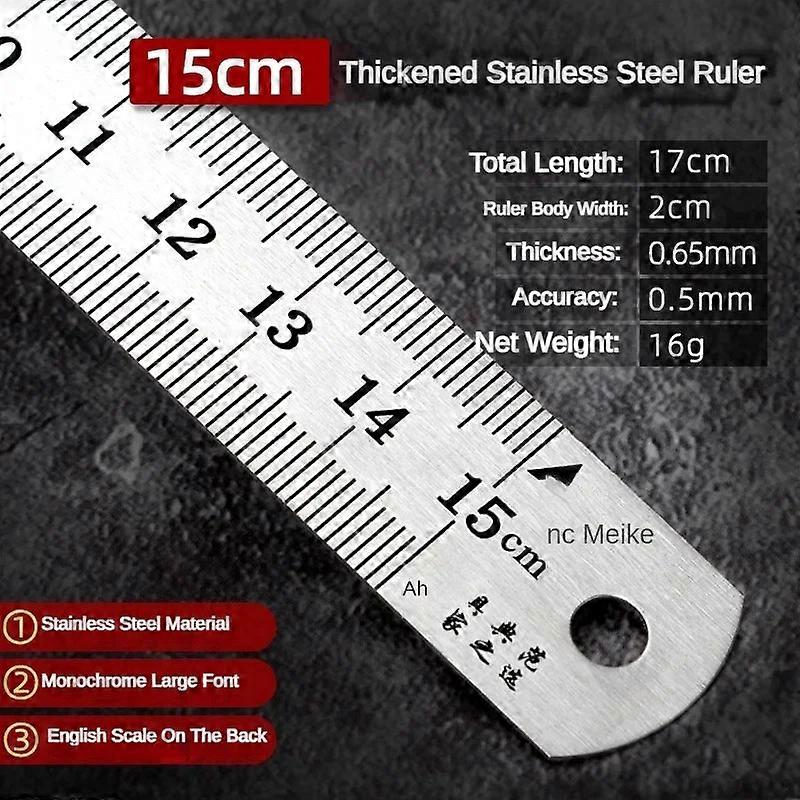 Stainless Steel Ruler Metric & Inch Scale 50/30/20/15cm For School & Office. Introducing Our Premium Stainless Steel Rulers, Designed for Ultimate Precision and Exceptional Quality. Available in Four Versatile Sizes—15cm, 20cm, 30cm, and 50cm—these Rulers Are Perfect for a Variety of Measurement Needs, Ideal for Both Professional and Everyday Use. Crafted from Durable Stainless Steel, These Rulers Promise Long-term Resilience and Resistance to Wear, Ensuring Precise Measurements with Each Use. The High-precision 0.5mm Scale Guarantees Accuracy, Making Them Indispensable Tools for Drafting and Detailed Work. Featuring a Dual-sided Scale with Both Metric and Imperial Measurements, These Rulers Are Versatile and Suitable for Use in Any Region. The Convenient Hanging Hole Design Allows for Easy Storage, Preventing Loss or Damage and Ensuring They're Always Ready at Hand. Choose the Stainless Steel Ruler Tailored to Your Specific Needs, Whether for Office Tasks, School Supplies, Home Renovations, or Architectural Projects. Experience the Confidence and Efficiency That Comes with Precision Measurement.