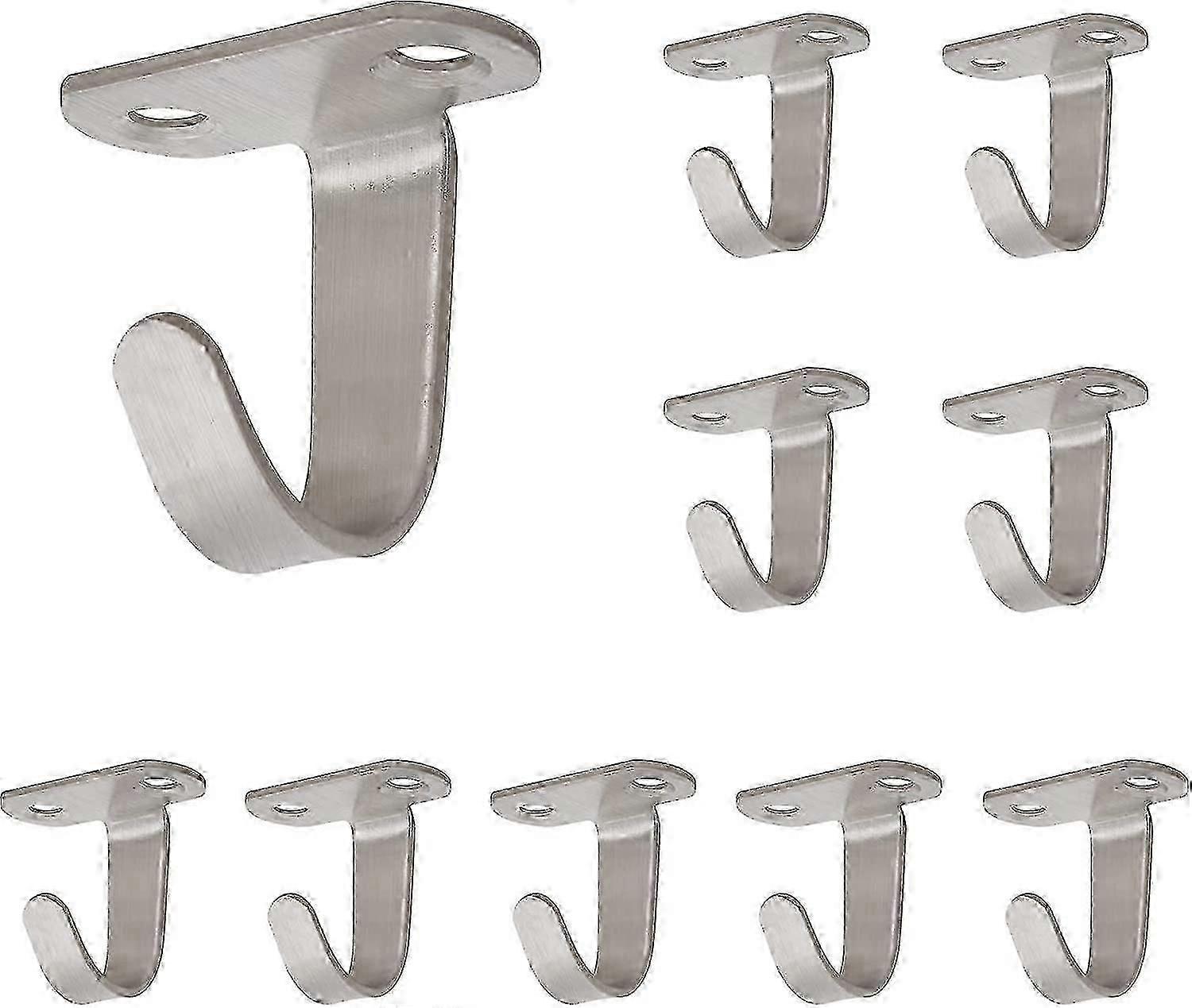 STURDY & RUSTPROOF Constructed of 304 premium solid stainless steel, which is durable, rustproof and ensuring great quality. Ideal for humid environments. Ceiling hook is polished and brushed by hand to make all edges are sleek. And will not damage your clothes and other stuff.STURDY ENOUGHCeiling mounted by 2 screws tightly on the ceiling wall or solid wood. It has strong load-bearing that can load up to 10-18lbs.SIMPLE & CLASSICE APPEARANCE DESIGNThe classic and simple ceiling hooks perfectly match most modern home decor. Beautiful and stylish style makes your home more attractive. Ceiling mounted and small size design does not take up much space and can use more free space.WIDELY APPLICATION- The multifunctional ceiling hook is a good helper for organizing, making your life more organized and convenient. These ceiling hooks are suitable for hanging bathroom towels, kitchen utensils, cabinet, planters, cups, bird feeders, holiday decorations, string lights, wind chimes and so on.EASY TO INSTALLScrew Installation - Double bolt installation is more stable and durable, with strong bearing capacity and will not loosen. All the screw accessories and installation instruction manuals required for installation included.