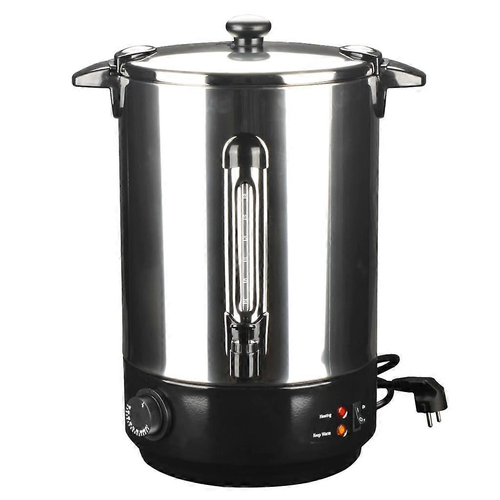 Dieser Weinwärmer hat eine große Kapazität von 15 Litern und eine Leistung von 2.500 Watt. Es funktioniert hervorragend, wenn Sie Weine, Wasser, Kaffee, Tee usw. erhitzen oder einfach nur warm halten. Er ist ideal für professionelle Caterer und für den täglichen Gebrauch geeignet. Dieser Weinwärmer ist mit einem zwischen 30 °C und 110 °C einstellbaren Temperaturregler und einem eingebauten Hahn zum einfachen Servieren von Glühwein und anderen heißen Getränken ausgestattet. Der Weinkocher verfügt über eine eingebaute Wasserstandsanzeige zur schnellen Kontrolle der verbleibenden Flüssigkeitsmenge und einen Trockenlaufschutz, der das Gerät automatisch abschaltet und für höchste Sicherheit sorgt. Der Weinkessel hat zwei isolierte Kunststoffgriffe zum einfachen Transport und einen abnehmbaren Deckel, der einrastet.