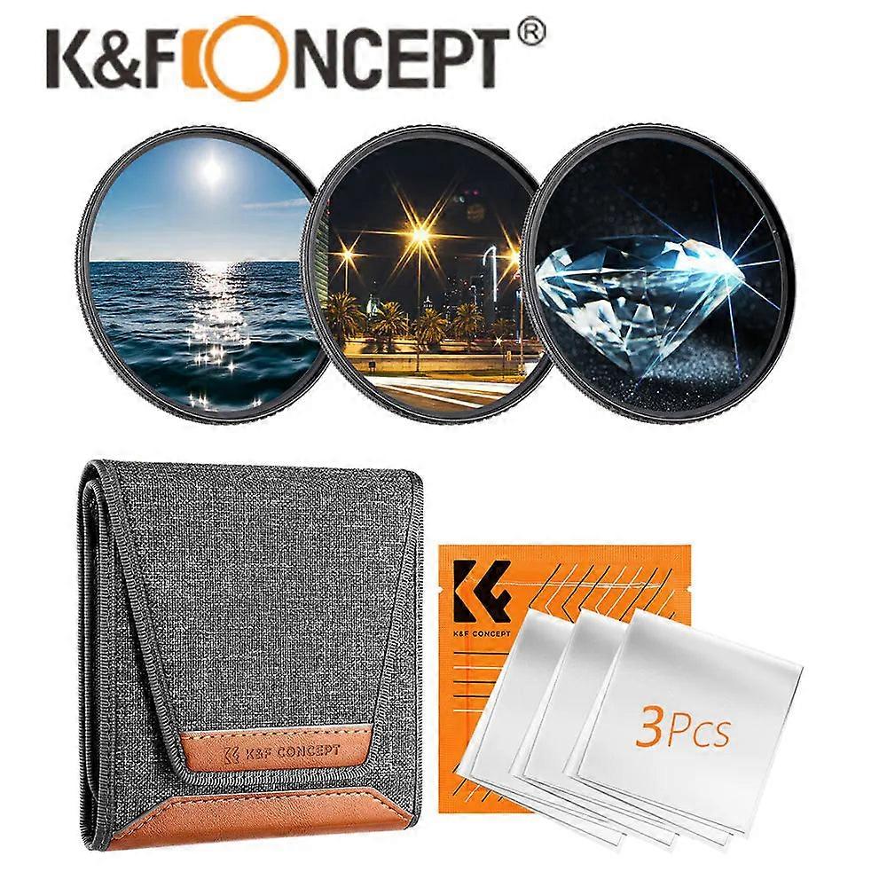 Star Filter Kit 3-pack: 4, 6, 8 Points—fits 49mm-82mm Camera Lenses