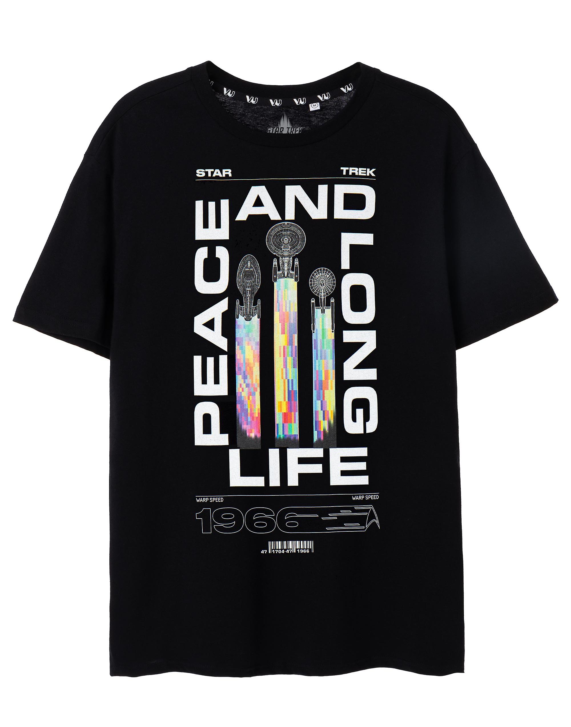 Star Trek Mens Short Sleeved T-Shirt Black Peace and Long Life