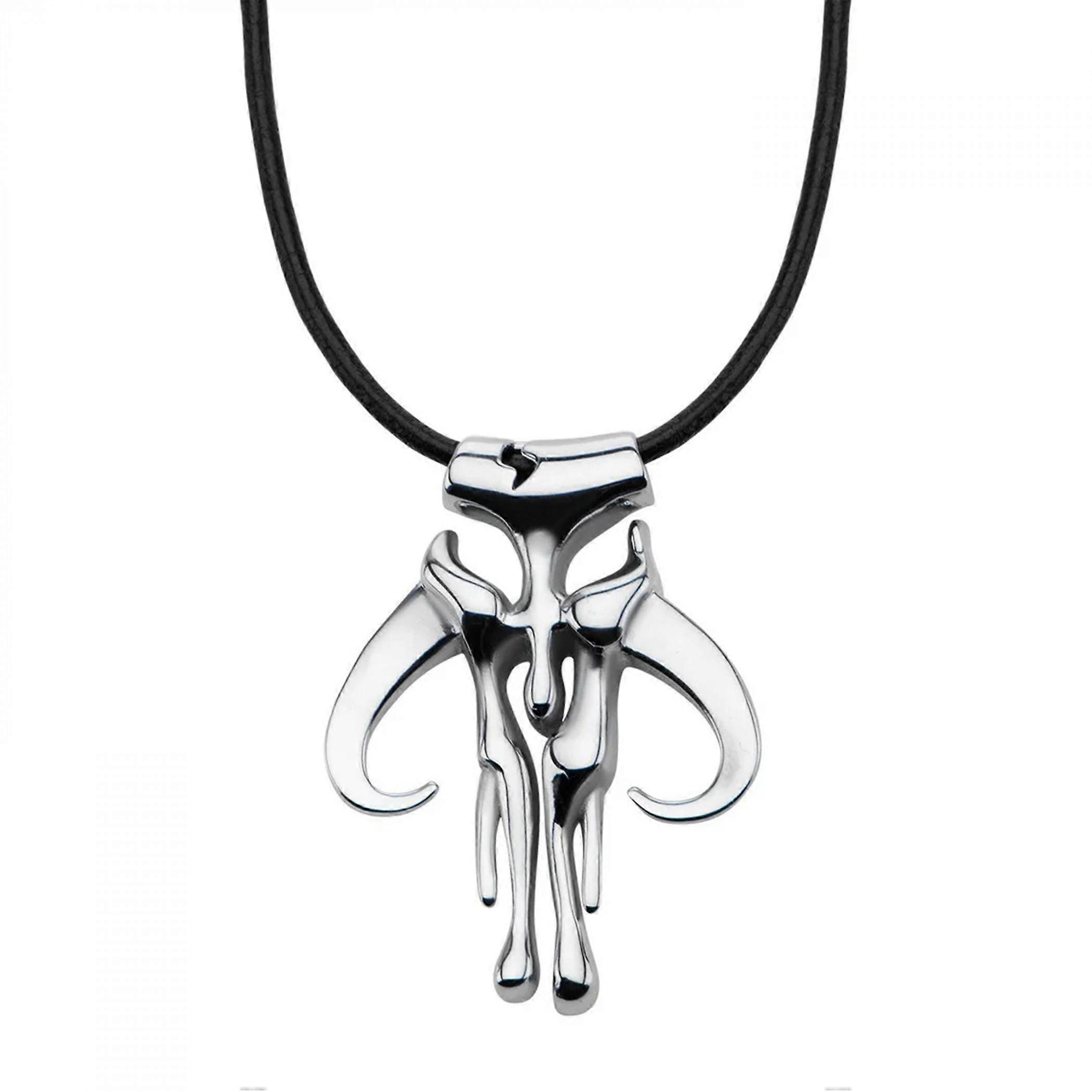 Star Wars Mandalorian Symbol Pendant with Leather Cord Necklace