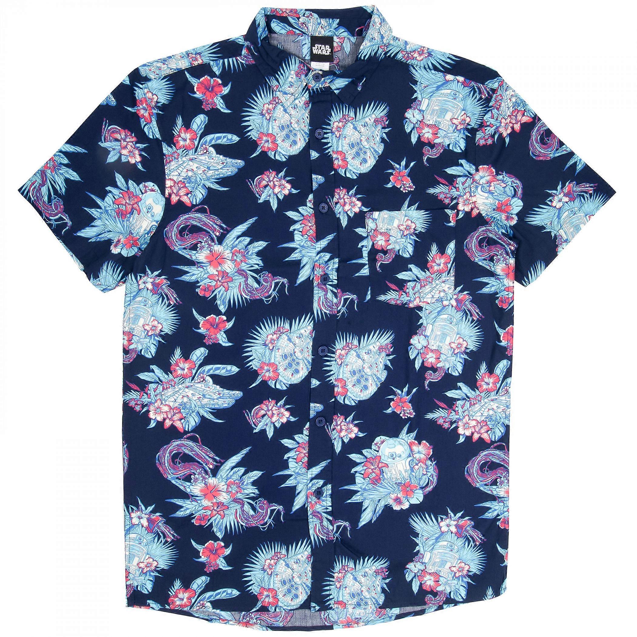 Star Wars R2-D2 and Millennium Falcon Hawaiian Print Button Down Shirt
