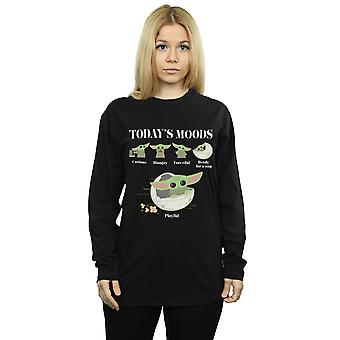 Star Wars Women's The Mandalorian The Child Moods Boyfriend Fit Long Sleeved T-Shirt