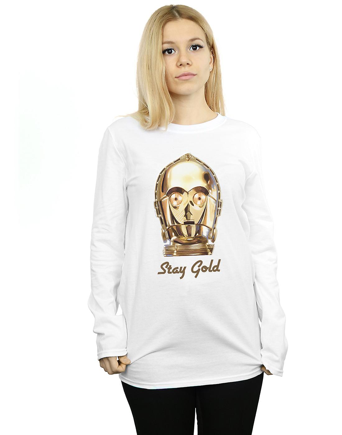 Star Wars Women's The Rise Of Skywalker C-3PO Stay Gold Boyfriend Fit Long Sleeved T-Shirt