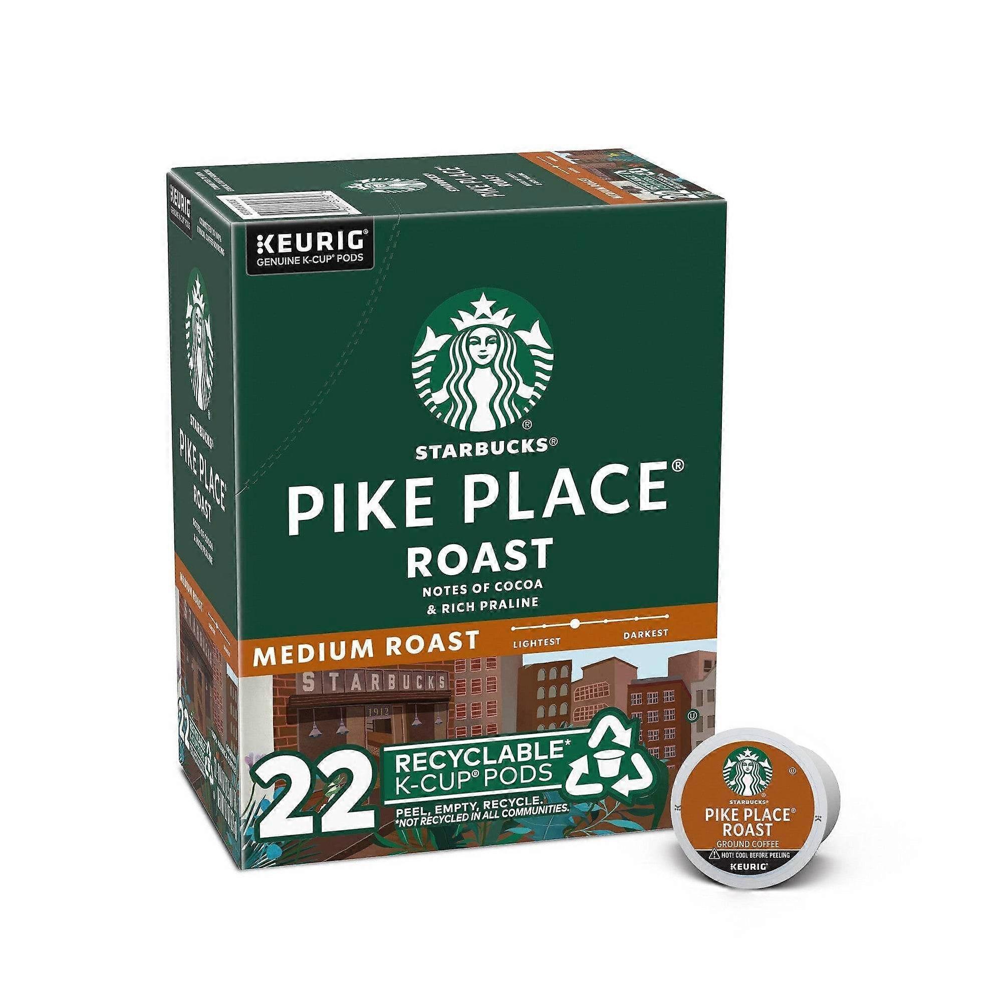 Starbucks Medium Roast K-cup Keurig Pods, Pike Place Roast, 22 Ea