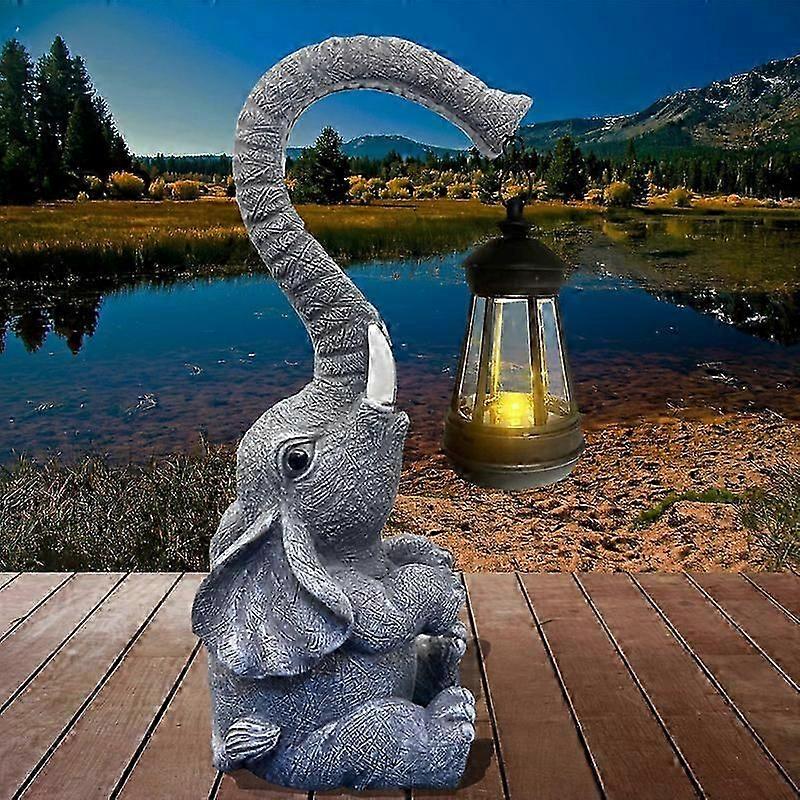 Statue Elephant with Solar Outdoor Lights for Garden Dcor