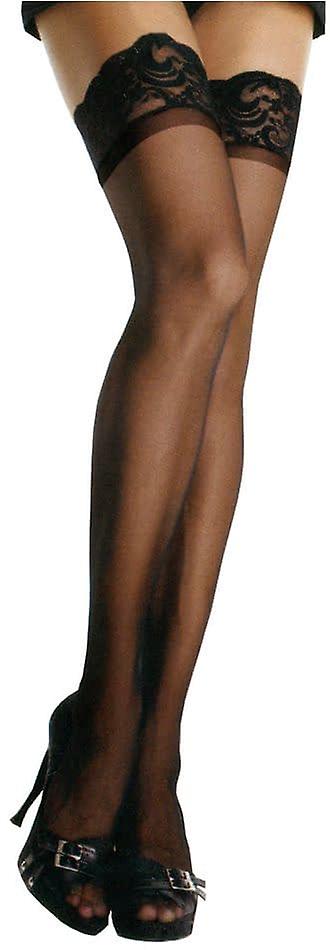 Sheer Nylon Thigh Highs Have A 3-Inch Lace Top With Silicone Backing To Keep Them In Place. One Size Fits Most Adults.