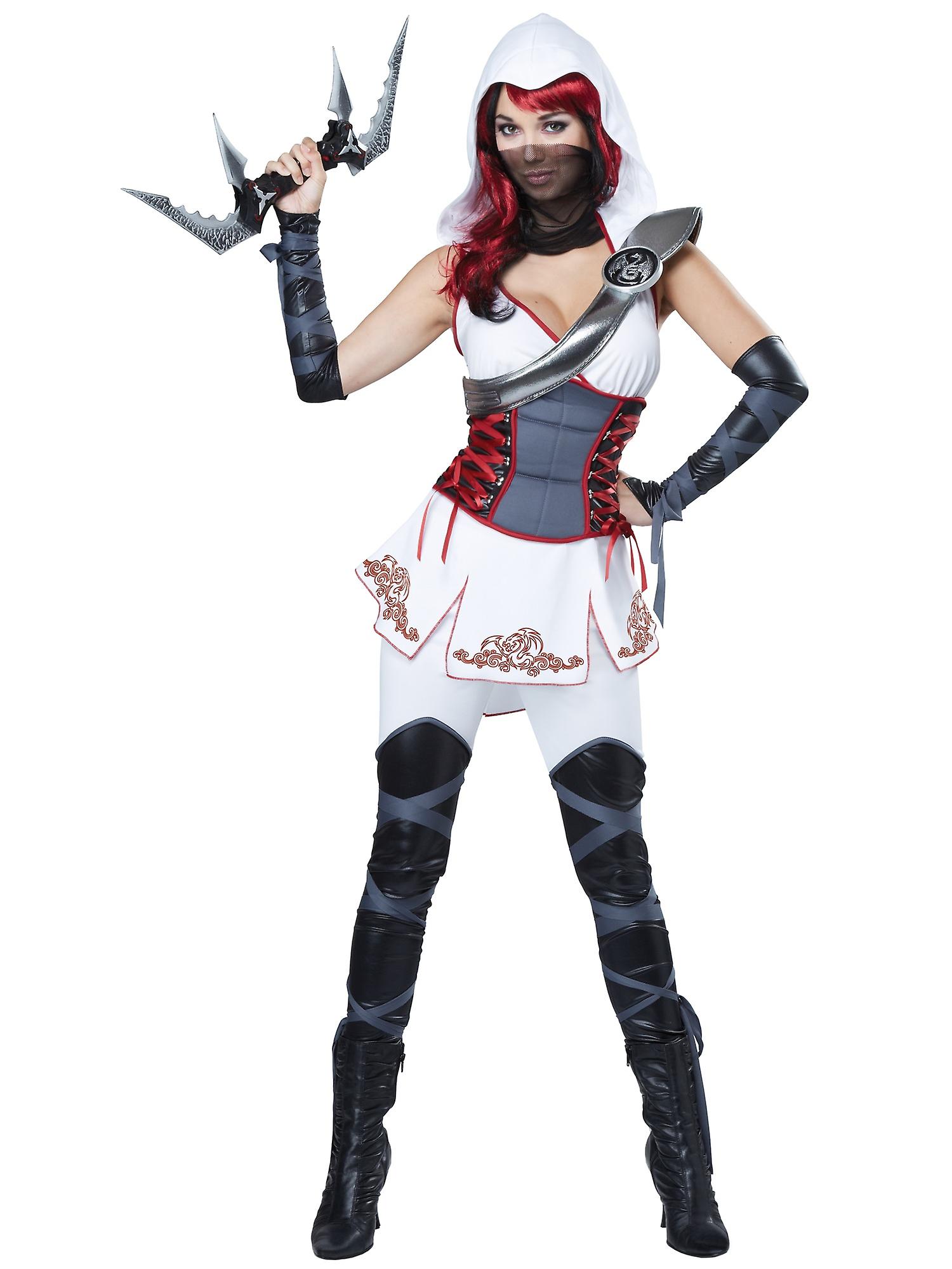 Stealth Ninja White Japanese Warrior Hooded Samurai Womens Costume