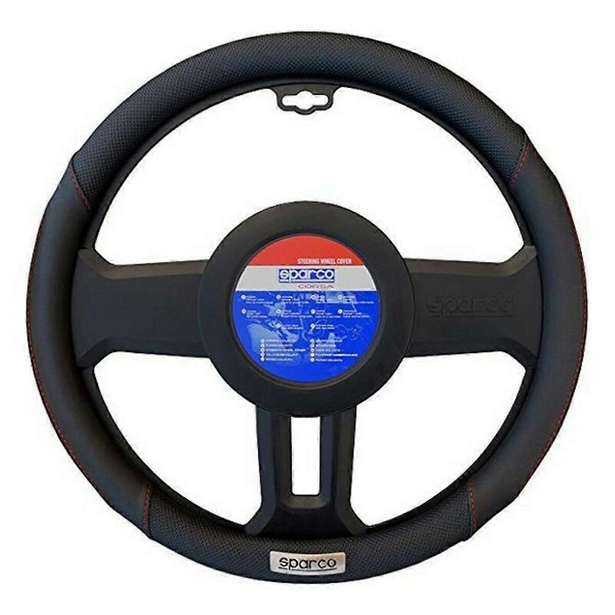 Equip your vehicle with the latest industry products Steering Wheel Cover Sparco SPC1113BK Black Red (Ø 36 - 38 cm) and don't miss out on anything The SPC1113BK steering wheel cover from Sparco is a universal accessory designed to enhance comfort and control while driving. Made with a combination of durable materials like PVC and polyurethane, this cover provides a non-slip surface that helps maintain a firm grip in any situation, increasing driving safety. Its design includes easy installation, allowing any driver to fit it without tools or complications, adapting to most steering wheels on the market thanks to its universal compatibility. Available in black and red, the colors add a discreet and sporty touch to the vehicle interior while protecting the original steering wheel surface from wear, dirt, and sweat. This product, imported from China, stands out not only for its functionality but also for the quality of its materials, offering durability and a pleasant feel. In short, this steering wheel cover is a practical and efficient solution for those seeking to improve grip and protect their steering wheel with an easy-to-use, well-finished accessory. Characteristics: Non-slipEasy to set upColour: BlackRedMaterial: PVCPolyurethaneSize: Ø 36 - 38 cmCompatible: UniversalType: Steering Wheel Cover3-pointWeight: 1 kgRecommended use: CarAdjustment system: Safety belt