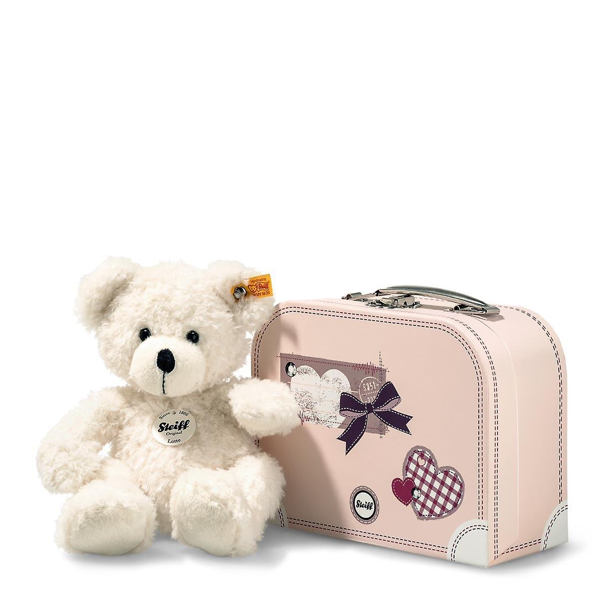 Lotte Teddy bear in suitcase makes a great gift idea. Lotte measures 28 cm and comes with her own suitcase. The suitcase has room for many different secrets and toys. The bear is made of cuddly soft plush and is great for cuddling and playing with. Lotte is stuffed with bean bags so she can sit better and increase your child's playing and tactile experience.Material Composition:�100% POLYESTERWashability:�30� C Gentle Wash, Do Not Bleach, Do Not Tumble Dry, Do Not Iron, Do Not Dry CleanEver wondered what do the different Steiff Ear Tags mean? Find out more here