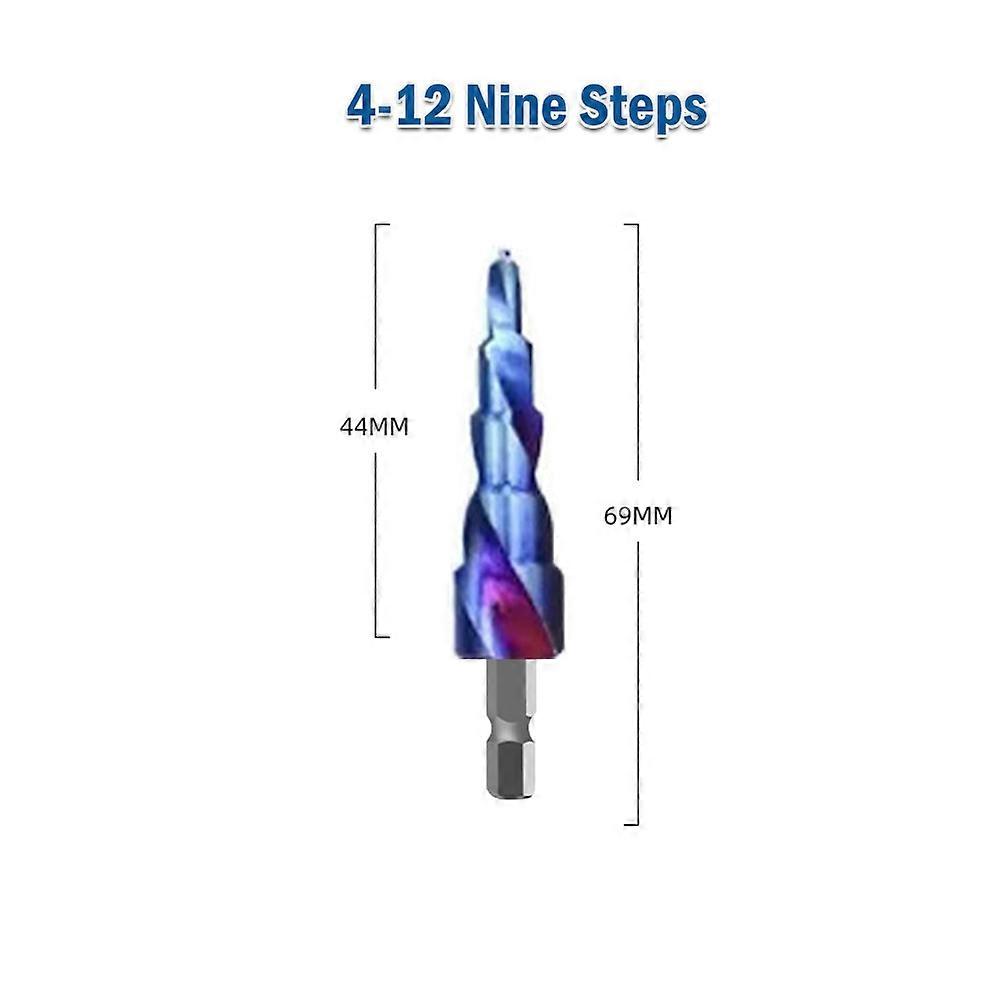 Features:* This drill bit enables it to achieve deburring, chamfering, hole expansion and other functions that other drill bits cannot finish.* Suitable for workpieces with hardness below 25°, such as cast iron plate, aluminum plate, PV plate, insulation plate, etc.* The high-speed steel structure can prolong the service life of the cutting edge even in extreme temperatures. The blue coating increases the drill bit's resistance to heat, corrosion and rust.* Unique step structure, a single drill bit can drill holes in many different sizes.* It is very suitable for cutting holes in various materials, including copper, wood, pvc, aluminum, cast iron, titanium alloy, etc. Fit for pistol drill, hand drill, loading drill, bench drill, etc. Specifications:Product Name: Step Drill BitMaterial: HSS 4241 Color: Blue Shank: 1/4 Hex (6.35mm)Optional Type: Straight Flute, Spiral FluteOptional Size: 4-12mm, 4-20mm, 4-32mm Suitable for: Drilling for Copper, Wood, PVC, Aluminum, Cast Iron, Titanium Alloy, etc. Quantity: 1PcPackage Contents:1 x Step DrillNote:1. Transition: 1cm=10mm=0.39 inch.2. The actual colors of the item may be slightly different from the pictures shown on website caused by many factors such as brightness of your monitor and light brightness.3. Please allow slight manual measurement deviation for the data.