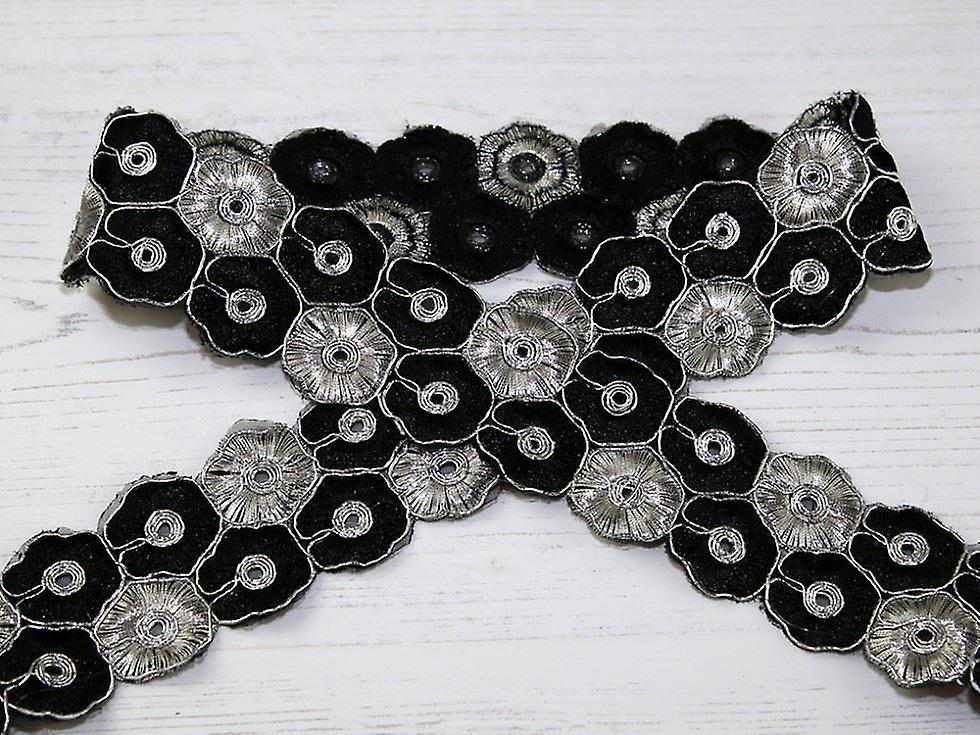Stephanoise 45mm Metallic Floral Braid Trim Black & Silver - per metre
