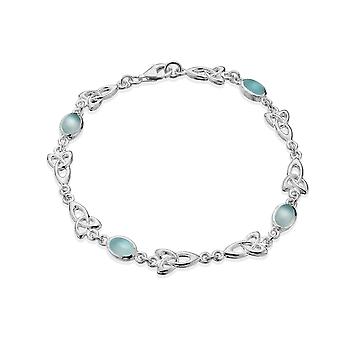 Sterling Silver Bracelet - Celtic Trinity Knot + Blue Chalcedony