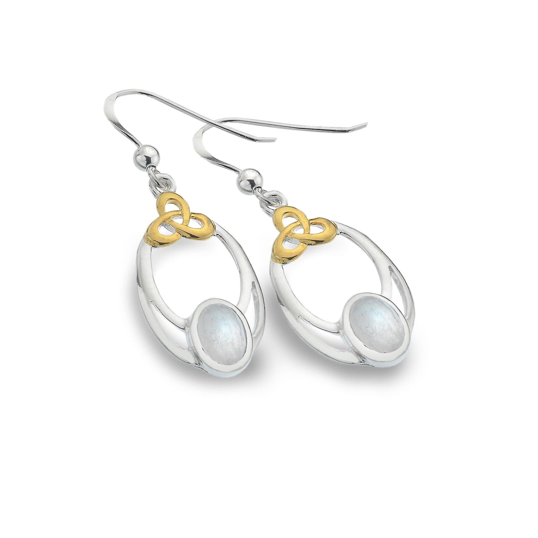 Sterling Silver Earrings - Celtic Knot + Gold Plated + Moonstone Oval