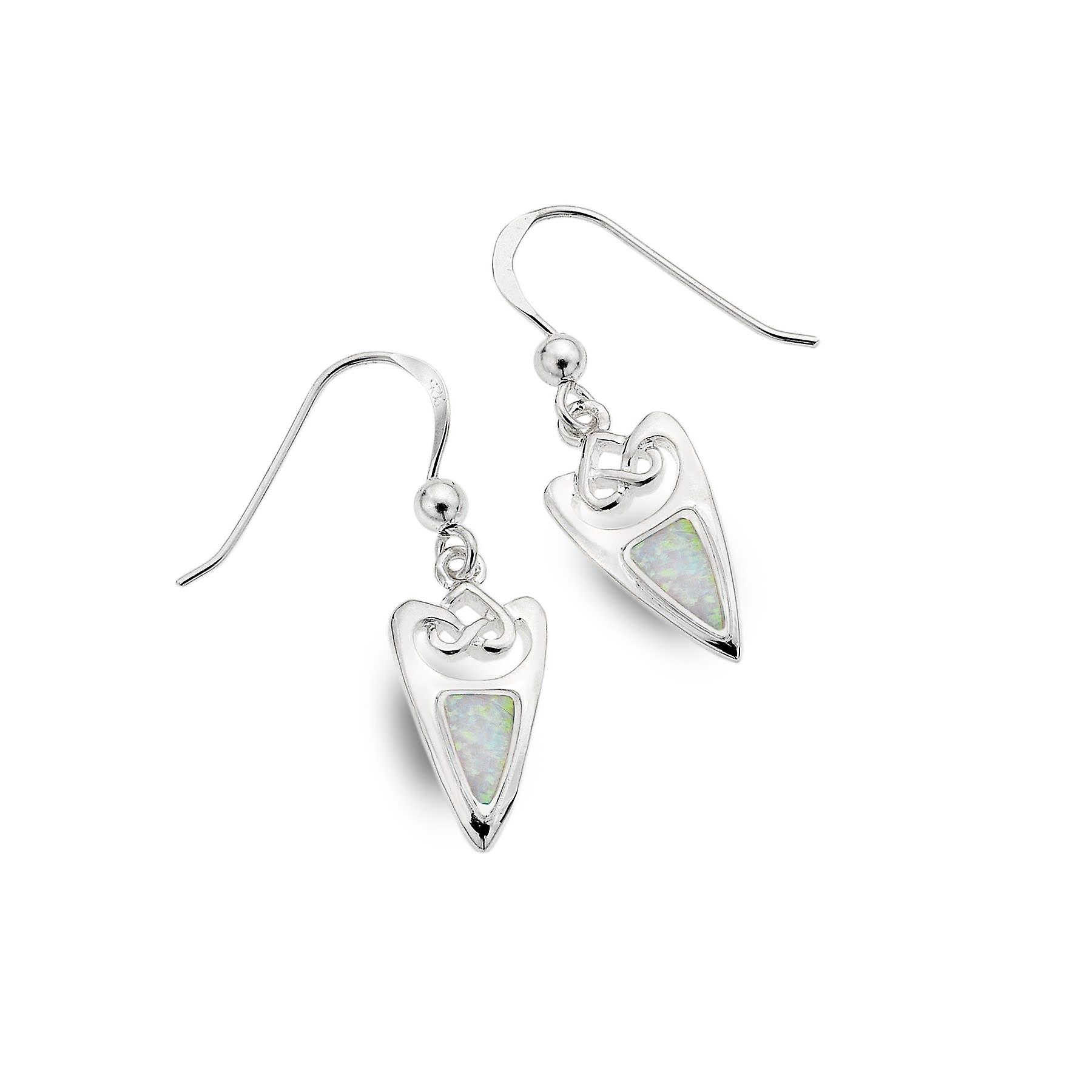 Sterling Silver Earrings - Celtic Knot + Synthetic Opal Trinity