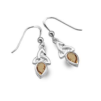 Sterling Silver Earrings - Celtic Trinity + Citrine