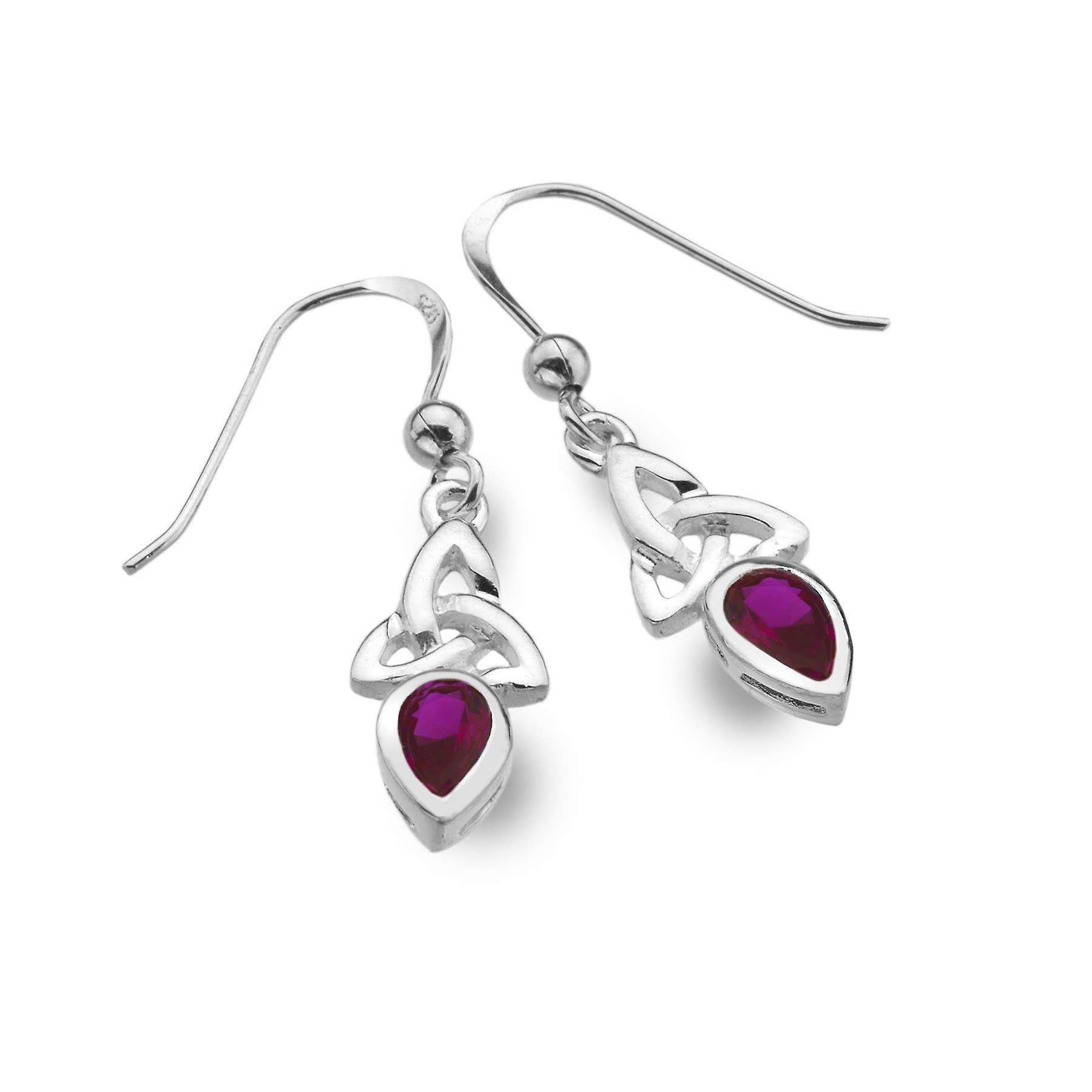 Sterling Silver Earrings - Celtic Trinity + Synthetic / Ruby