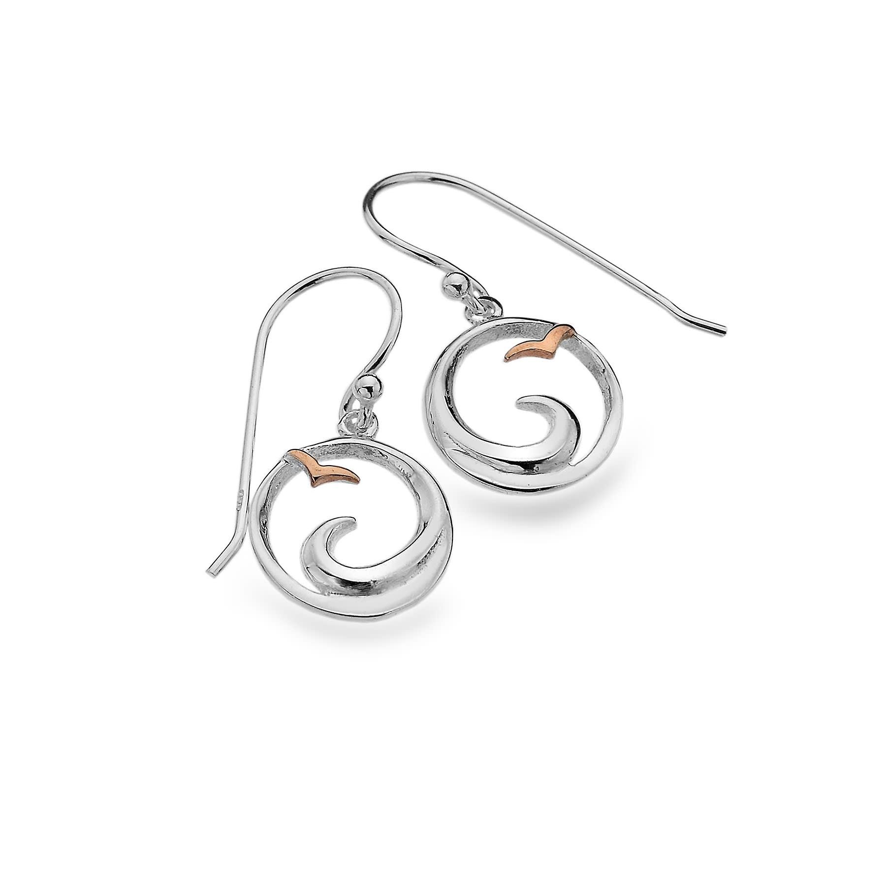 Sterling Silver Earrings - Origins Wave + Bird + Rose Gold