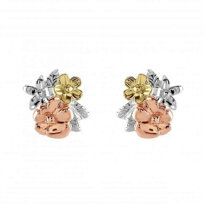 Sterling Silver Flower Cluster Rose & Gold Plate Stud Earrings 40806RGD