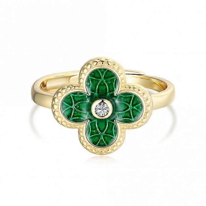 Sterling Silver Gold Plated Adjustable Green Lucky 4 Leaf Ring ERLR005
