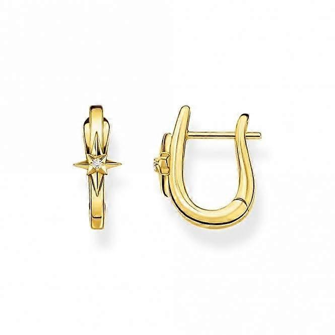 Sterling Silver Gold Plated Zirconia Star Hoop Earrings CR654-414-39