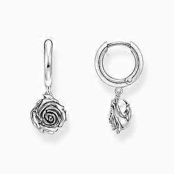 Sterling Silver Midnight Rose Hoop Earrings CR757-637-21
