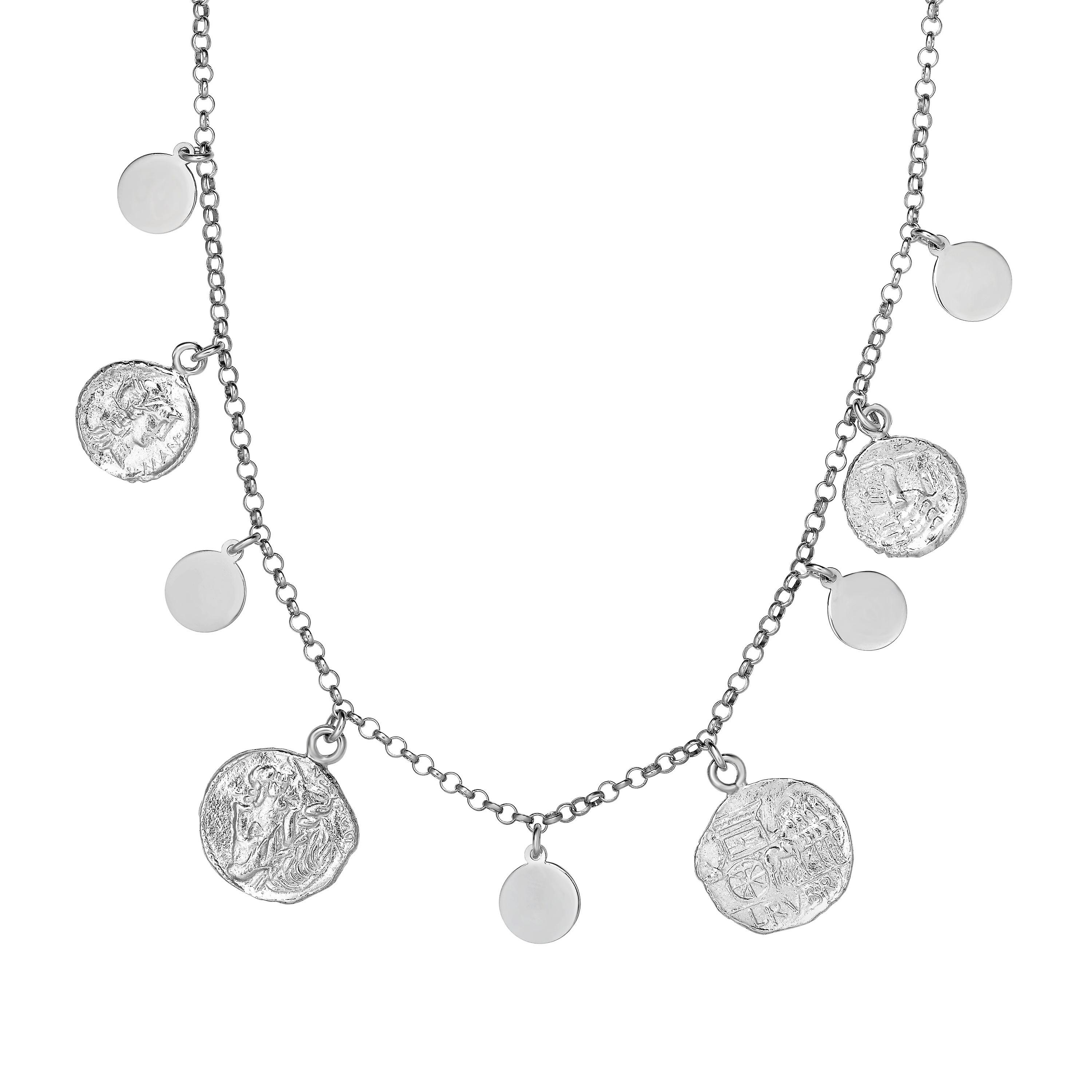 Sterling Silver Multi Roman Coin Charms Necklace, 18"