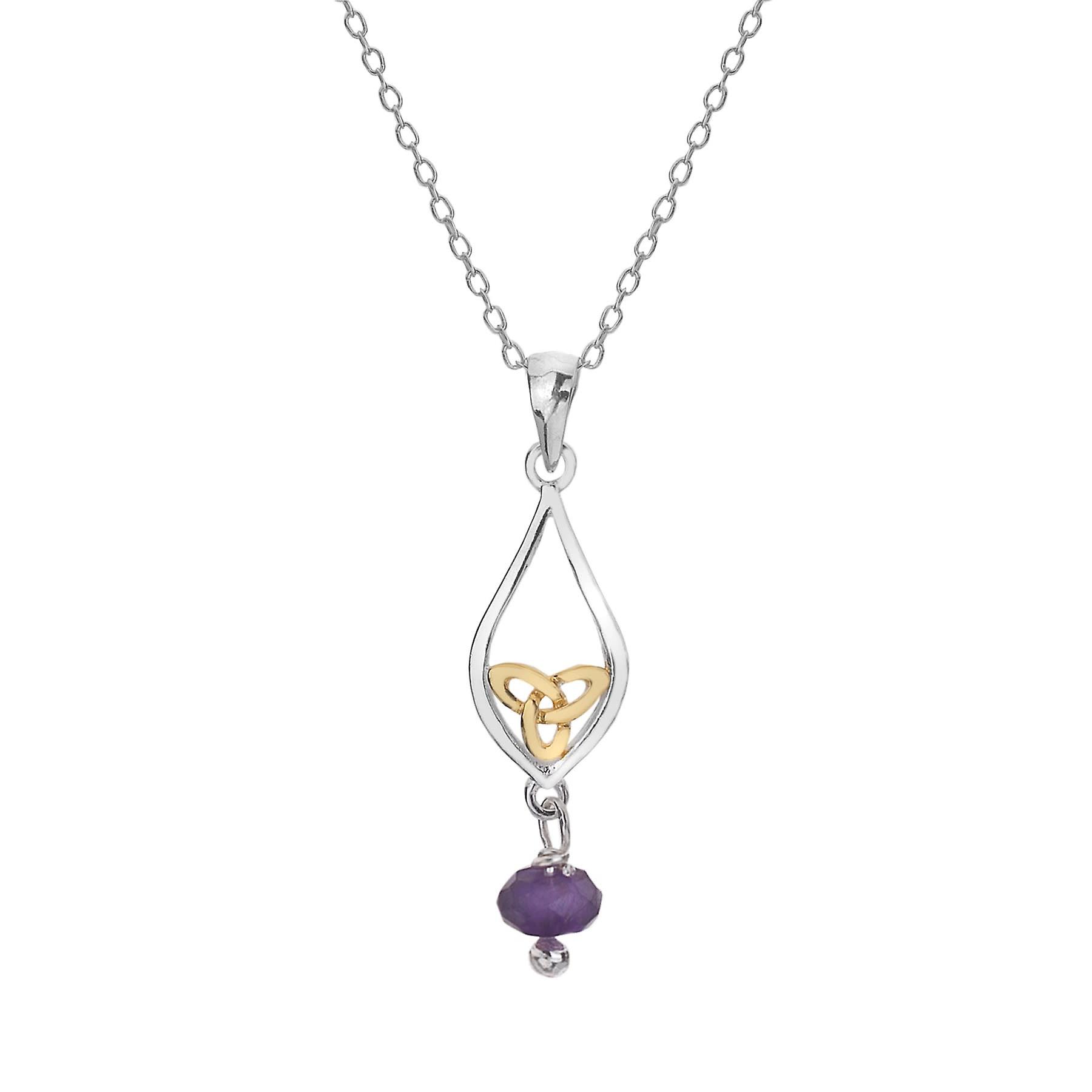 Sterling Silver Pendant Necklace - Celtic Knot + Gold Plated + Amythest + Teardrop